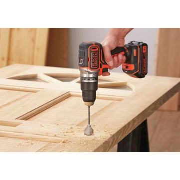 - La puissance et la vitesse pour visser et percer dans le bois, le métal et la pierre grâce à 2 vitesses variables, un couple de 52 Nm et la fonction marteau.