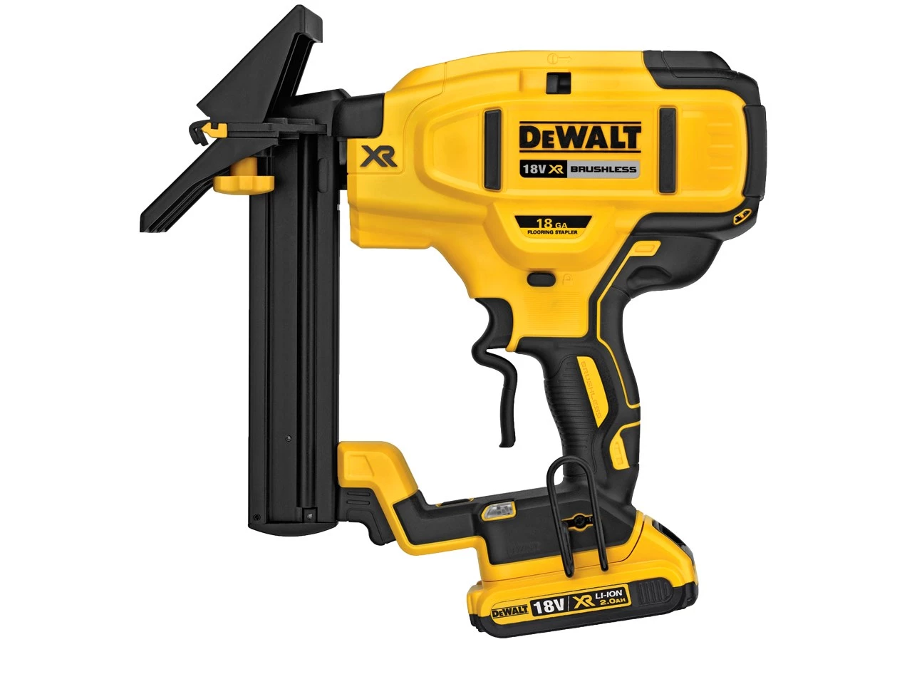- L’agrafeuse de plancher 18V XR Li-ion 18Ga offre une solution flexible pour fixer les planches de plancher en bois