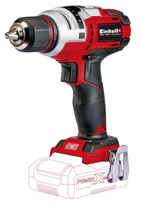 La TE-CD 18 Li E Solo est une perceuse/visseuse sans fil qui peut être utilisée pour percer et visser dans le bois, l’acier et la pierre tendre. Pour la maison, l’atelier ou le garage, c’est une machine puissante pour les travaux les plus difficiles. Par exemple, si vous devez construire un toit de terrasse, une maison de jardin ou un abri de voiture, cette machine est tout à fait adaptée à ce travail. La machine fait partie de la gamme de produits Power-X-Change. La machine est équipée d’un moteur de 18 V qui, associé aux puissants engrenages d’entraînement en métal, produit un couple élevé de 47 Nm. Lorsque vous utilisez cette machine, vous avez le choix entre deux vitesses. En première vitesse, la machine offre une vitesse à vide de 0 à 400 tr/min. La deuxième vitesse offre une vitesse à vide de 0 à 1 400 tr/min. La machine dispose d’un réglage électronique du couple sur 9 positions. Sa taille compacte et son poids léger lui confèrent la puissance mais aussi la commodité qui revient à une machine de vissage et de perçage. Le réglage du couple de cette machine est contrôlé électroniquement. Vous n’avez plus besoin de tourner la tête de forage dans différentes positions, mais vous pouvez régler le couple de serrage à l’aide d’un interrupteur situé sur le dessus de la machine. La machine est équipée d’un mandrin sans clé de haute qualité de 13 mm à manchon unique, d’une fonction d’arrêt rapide et d’un verrouillage automatique de la broche qui permet à l’utilisateur de changer de foret très rapidement. En combinaison avec le débrayage de sécurité en cas de surcharge, qui empêche les vis de tourner, cela vous permet d’effectuer votre travail sans trop de retard. Grâce à son design ergonomique avec poignée souple, la machine tient bien en main et peut être guidée avec précision pour obtenir des résultats optimaux de perçage et de vissage. Une bonne vision du travail n’est pas un problème avec cette machine grâce à l’éclairage LED. Un clip de ceinture pratique est inclus avec cette machine. Cela vous permet d’accrocher la machine à votre ceinture pendant son utilisation. Cette perceuse et visseuse sans fil utilise une puissante batterie rechargeable de 18 V de la gamme de produits Power-X-Change. Cette batterie est dotée de trois voyants pratiques, qui vous donnent une indication du niveau de remplissage de la batterie. La batterie est disponible en différents mAh. La batterie n’est pas incluse dans la machine. Si vous possédez déjà des outils de la gamme Power-X-Change, vous pouvez utiliser les mêmes piles et le même chargeur pour cette perceuse et ce tournevis sans fil. En raison des possibilités techniques qu’offrent aujourd’hui les batteries lithium-ion, Einhell a également développé une gamme complète de produits dont les batteries sont interchangeables. Vous pouvez presque tous les articles de la ligne de produits Power-X-Change en version « KIT » (y compris la batterie