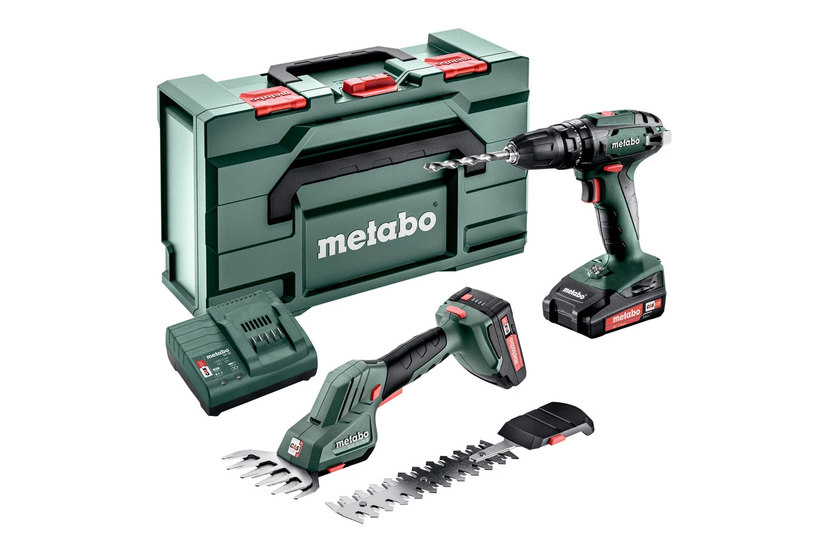 Metabo Comboset 2.2.4 18V 2.0Ah Li-Ion – Perceuse sans fil SB18 + Cisaille à arbustes et à gazon SGS 18 LTX Q 685185000 + garantie distributeur 5 ans