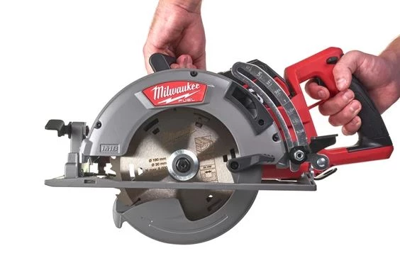 - Scie circulaire à poignée arrière avec lame à gauche pour une excellente visibilité de la ligne de coupe